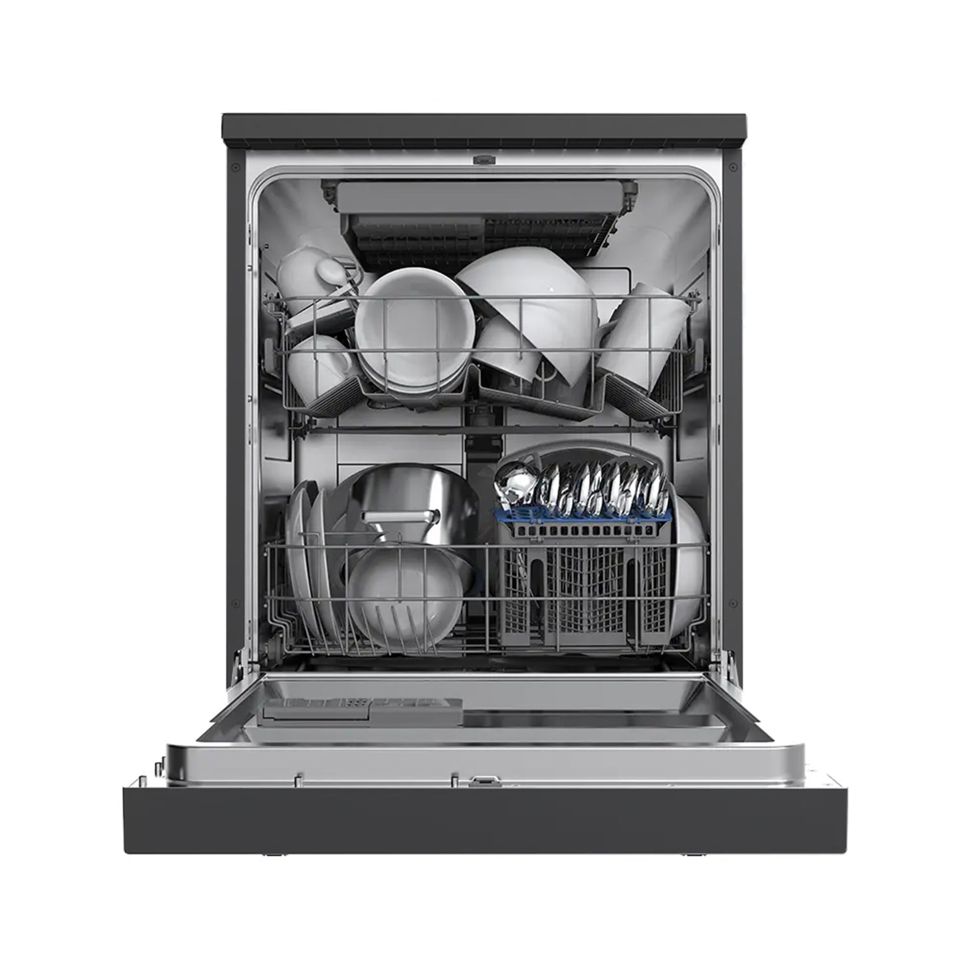 Masina de spalat vase Pyramis DWL 60FS Black, 14 Seturi, 7 programe, Clasa D, Power wash, Half load, Aquastop, Auto open, Child lock, 60 cm
