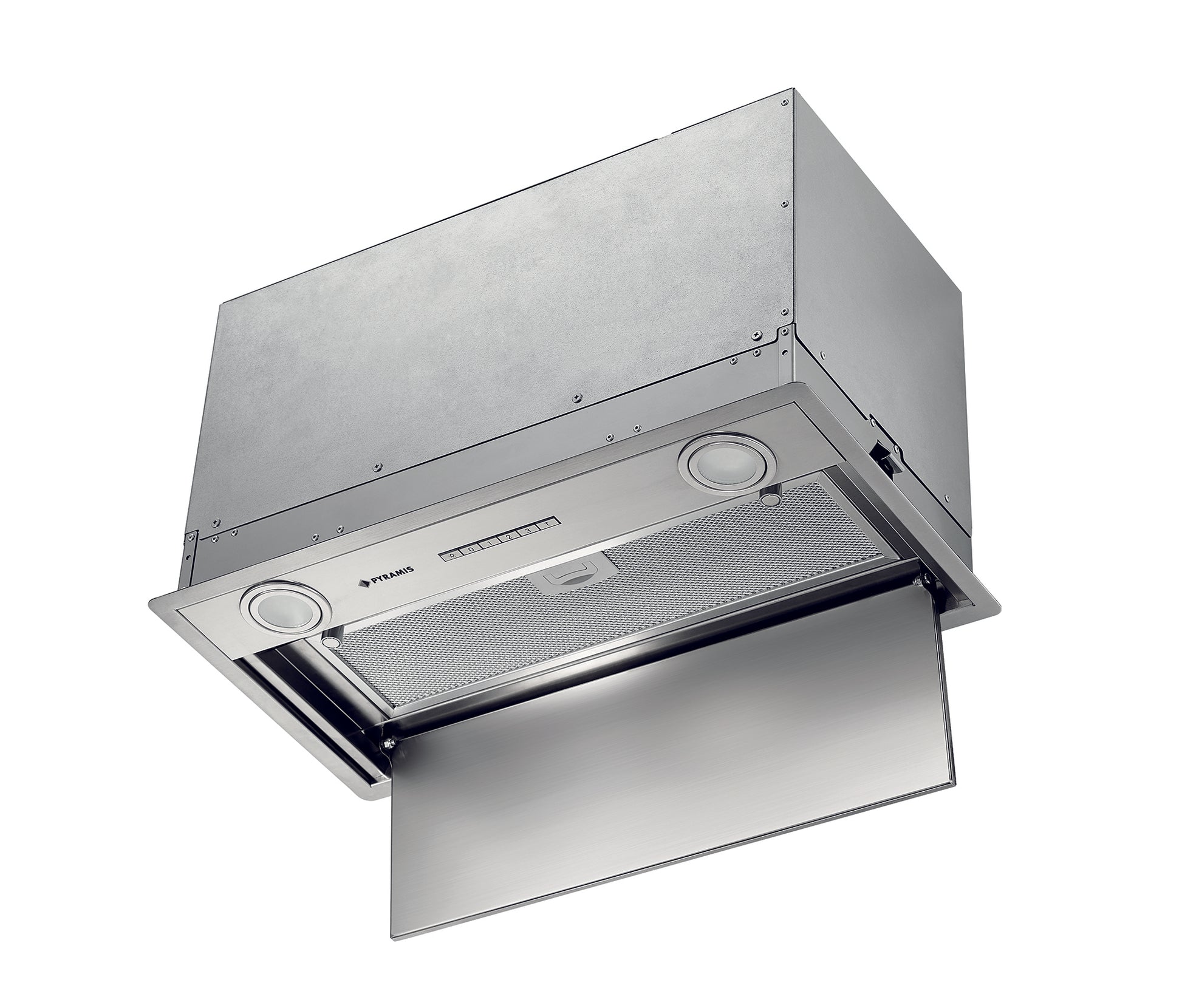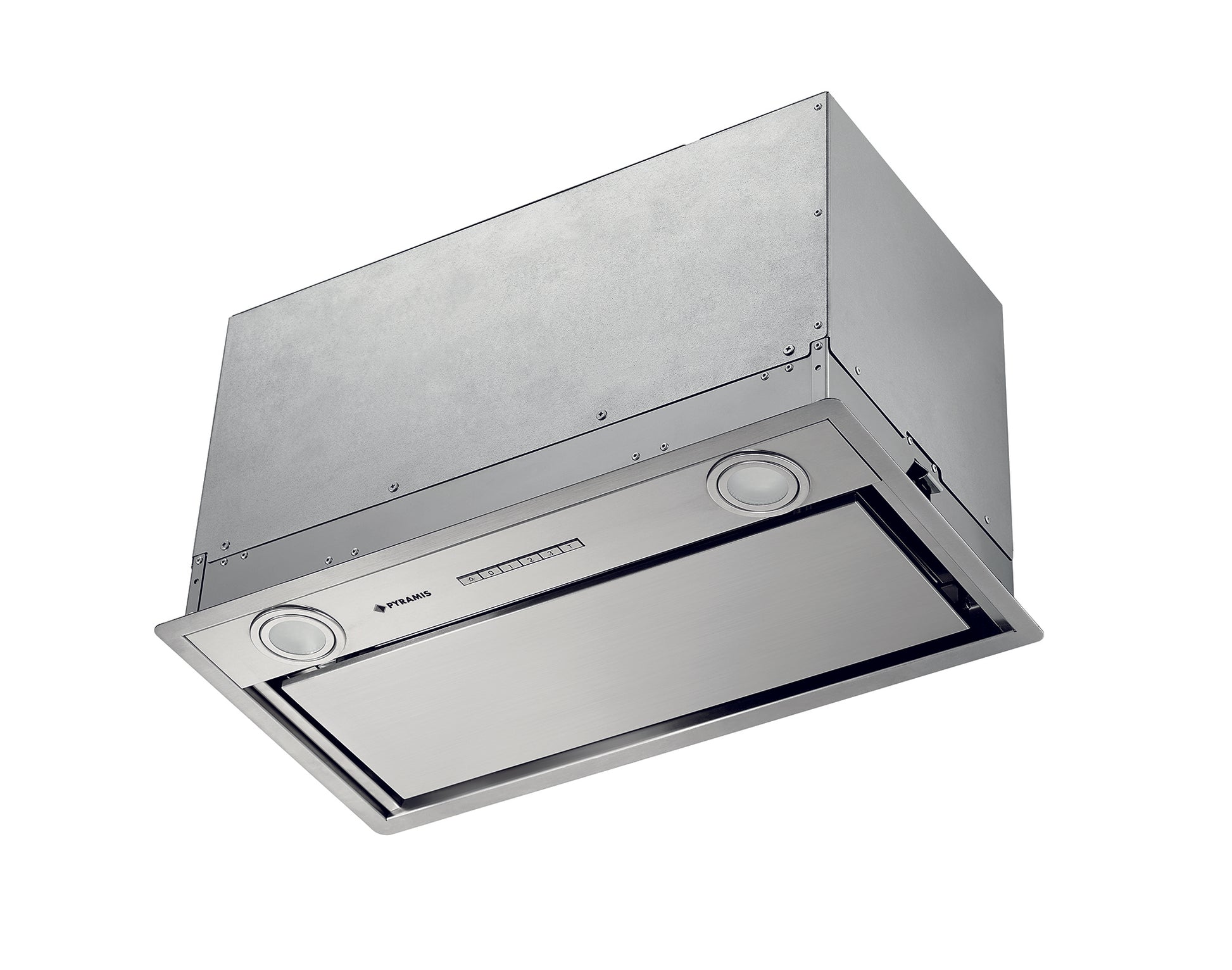 Hota total incorporabila Pyramis Turbo Plus, 55 cm, 1 motor, 730m³h, electronic control, Timer, finisaj metal vopsit gri si rama inox