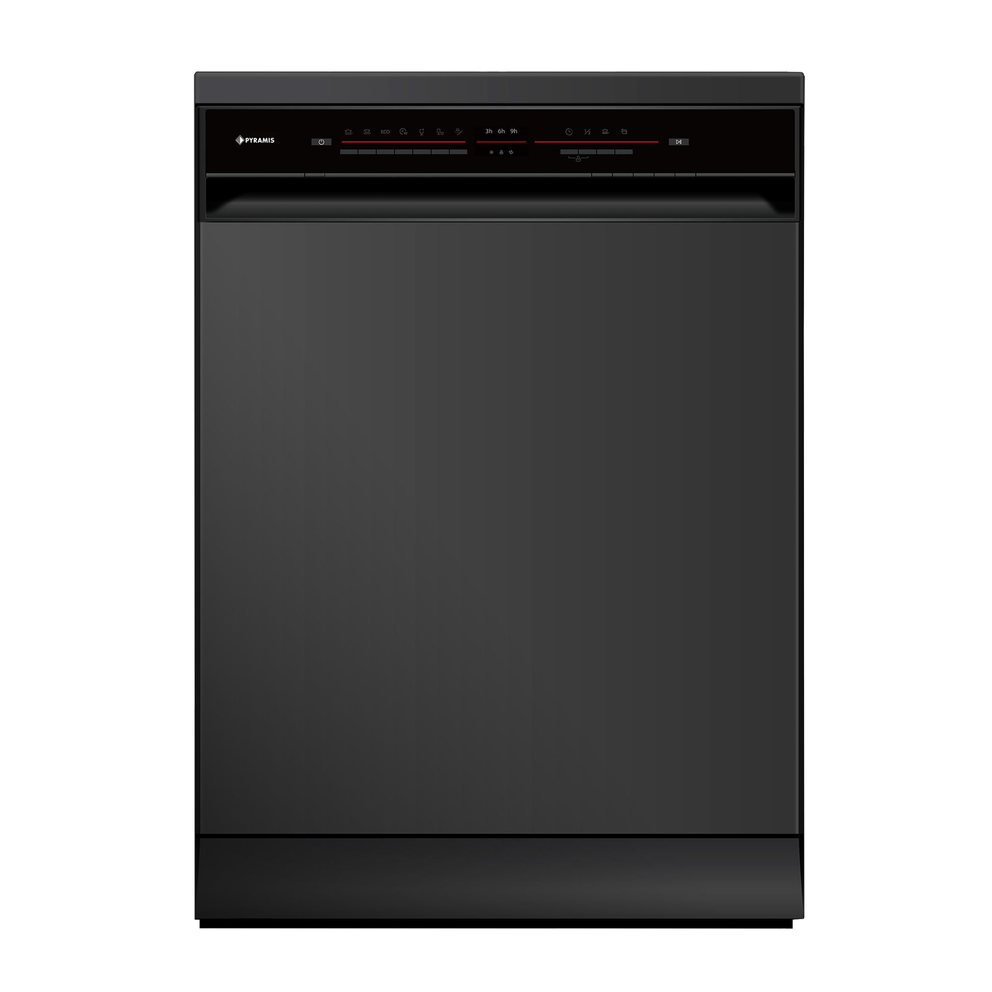 Masina de spalat vase Pyramis DWL 60FS Black, 14 Seturi, 7 programe, Clasa D, Power wash, Half load, Aquastop, Auto open, Child lock, 60 cm